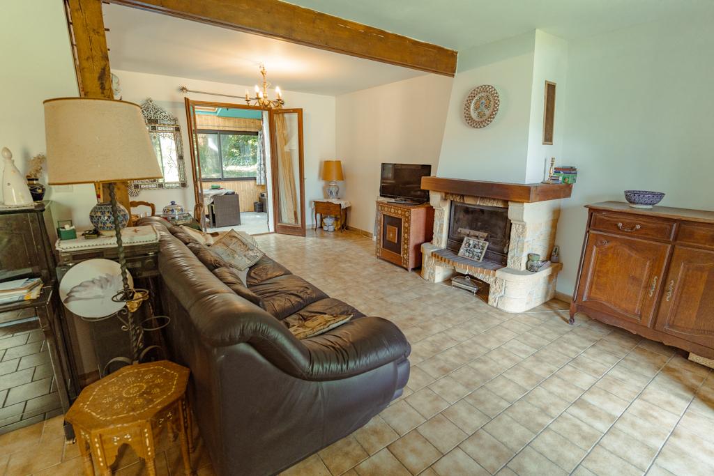 Une entrée sur le séjour/salle à manger spacieux (37m²), avec cheminée, donnant accès à un salon de jardin de 39m², orienté sud et sans vis à vis, qui permet d'accéder à une terrasse de 10 m² au jardin,