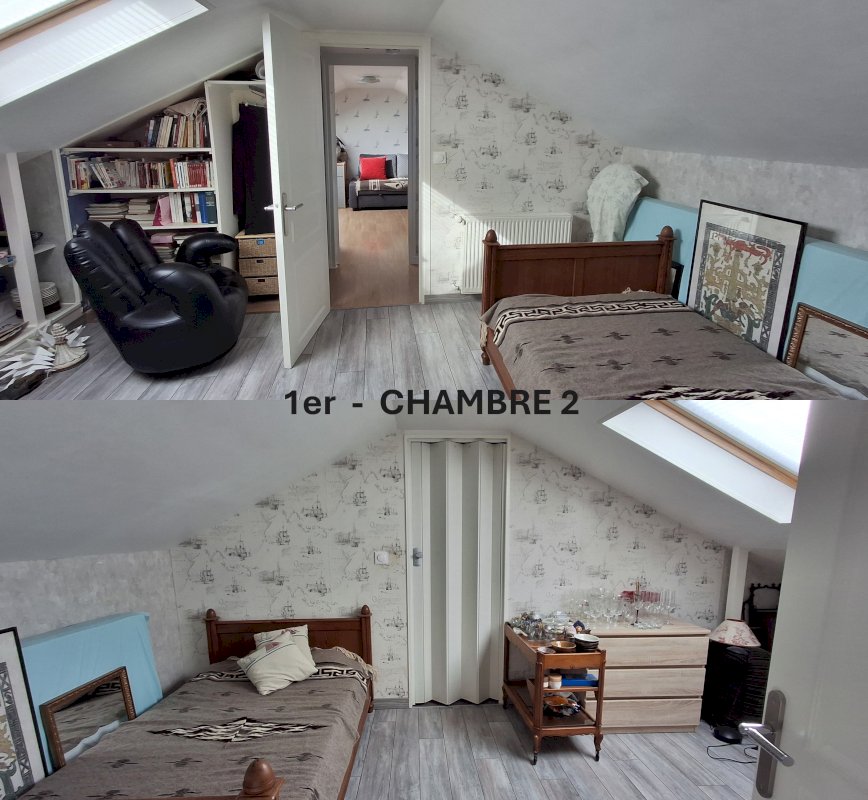 1er étage : comble aménagé avec deux chambres, salle de bain.
