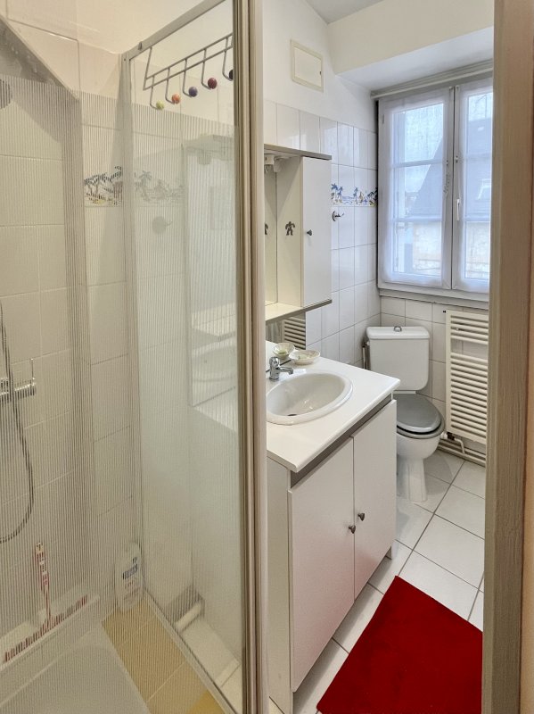 - Salle d'eau avec douche, vasque et WC.