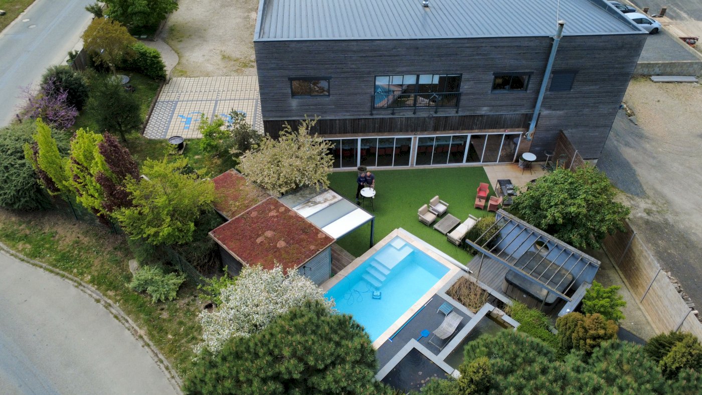 - Bâtiment principal à ossature bois de 460 m² habitables, aux prestations soignées.