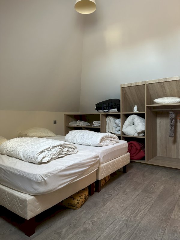 - A l’étage : mezzanine, chambre, appartement composé d’une chambre avec dressing, bibliothèque, salle d’eau, toilettes