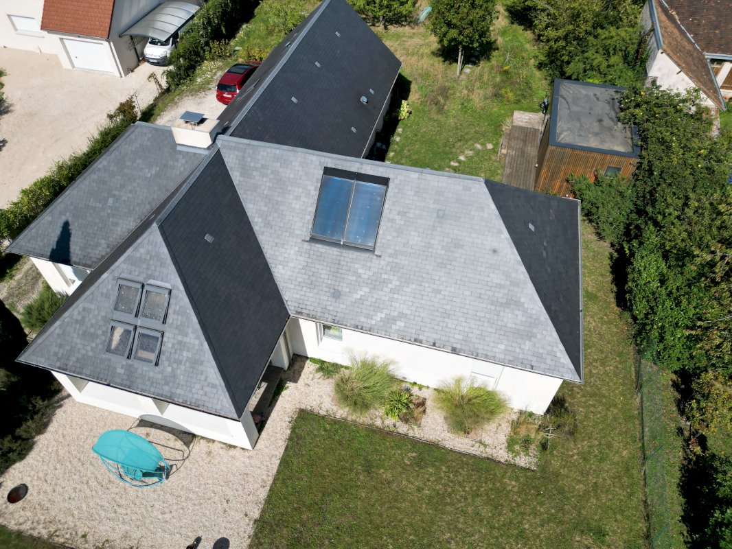 A six minutes de la gare TGV qui vous emmène à Paris en 42 minutes, de l’école et des commerces, maison basse consommation réalisée par l'architecte Ken Mimran, moderne (2012) et de standing, bioclimatique, RT2012, isolation par l’extérieur, huisseries alu oscillo-battantes, volets électriques, exceptionnellement lumineuse, équipée domotique, alarme, fibrée, chauffage au sol par pompe à chaleur, chauffe-eau solaire, terrasse couverte 18m², porche couvert 15m², grand double garage et terrain plat piscinable.