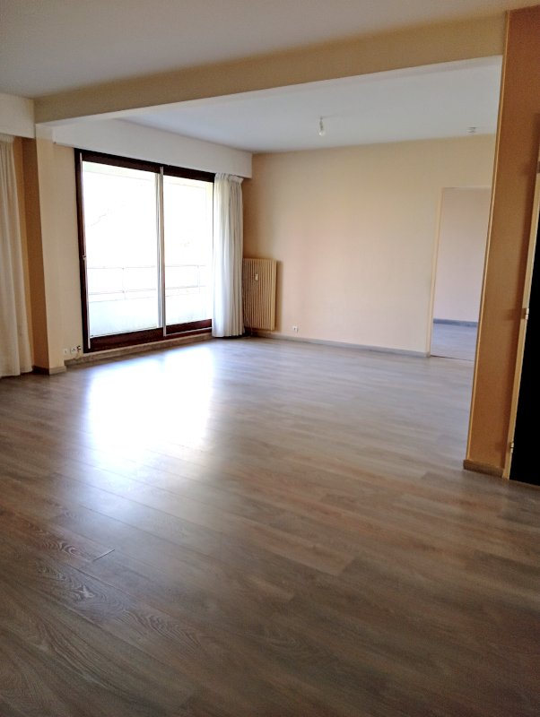 Appartement au 1er étage avec ascenceur, 3 chambres, un salon séjour de 34 m², un balcon de 15,70 m² donnant sur un parc boisé.