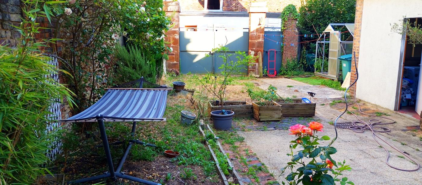 Jardin clos côté sud avec accès véhicule - possibilité d'en garer deux.