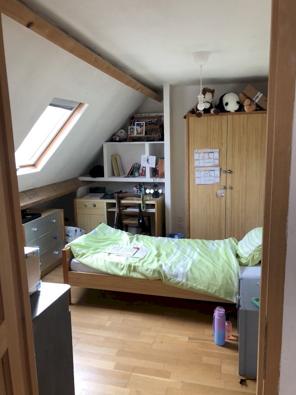 Un escalier quart tournant en chêne massif pour monter à l'étage, un bureau ouvert puis 3 chambres et un grenier.