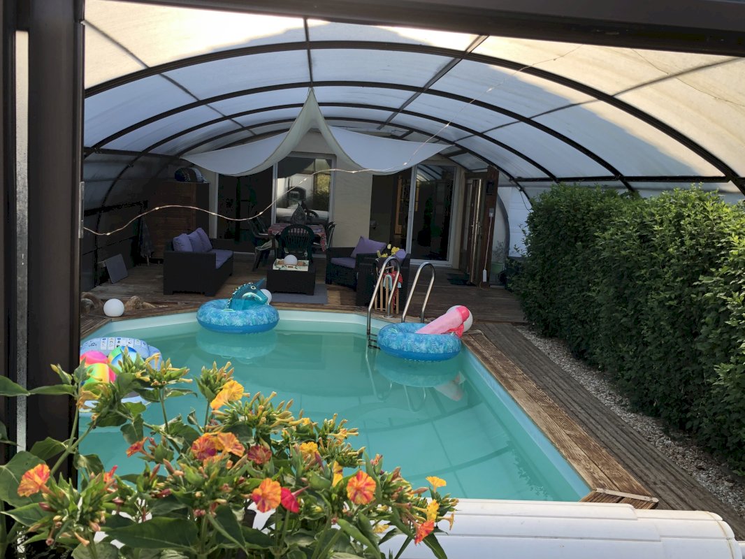 90 m² de véranda avec haie naturelle, jolie piscine, coin salon et table à manger !!!