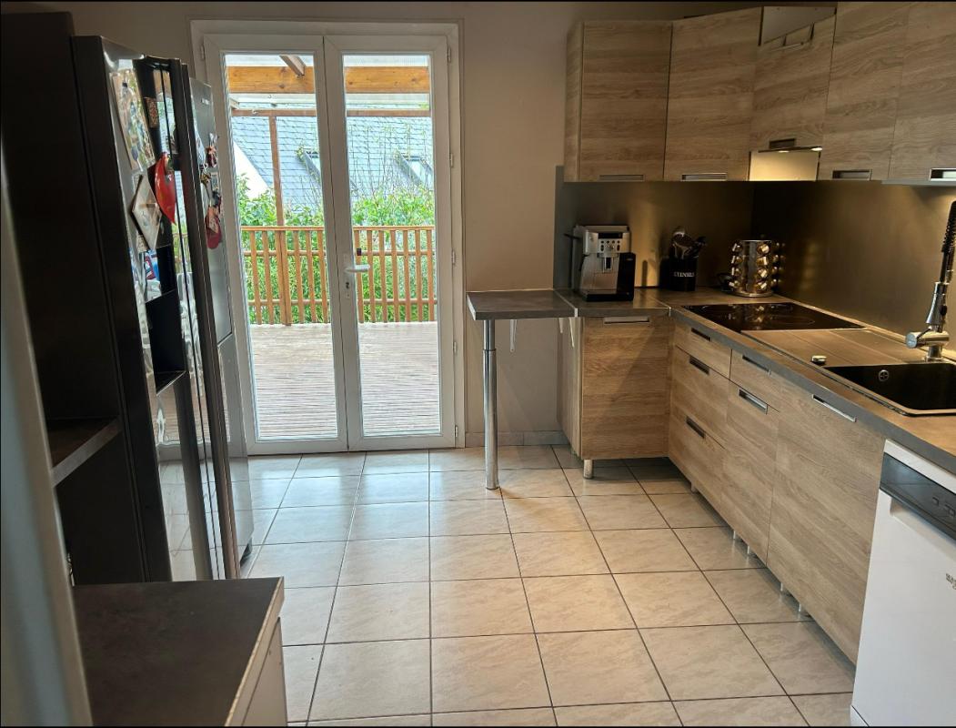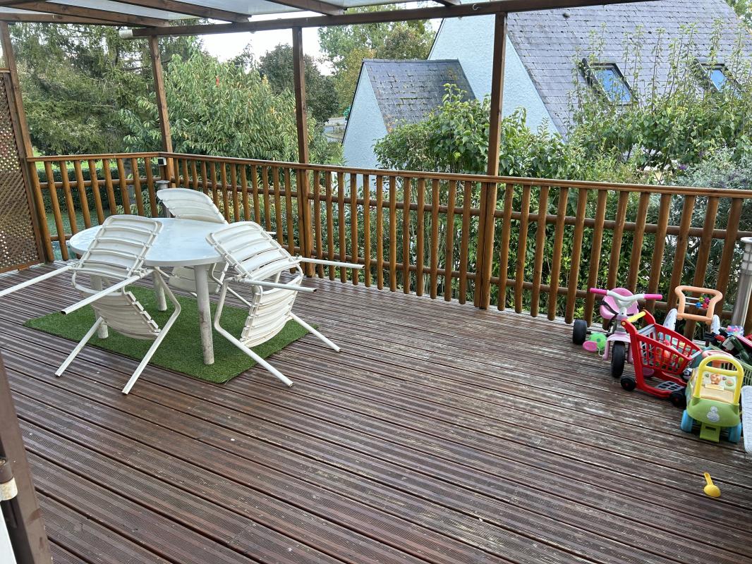 A vendre maison familiale comportant au rez-de-chaussée : une belle entrée, un double séjour de 30m² et une cuisine équipée aménagée donnant sur une pergola de 30m², un WC et un garage.