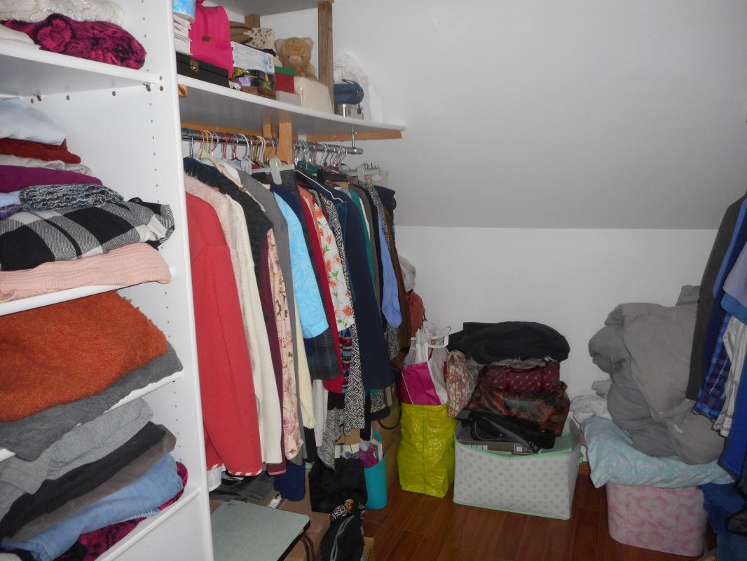 une avec dressing, salle de bains avec meuble, double vaques, fenêtre de toit style Vélux, 2wc. Abri de jardin