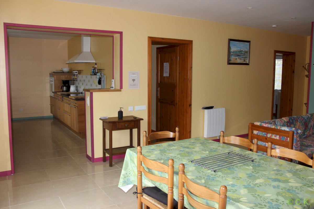 1 cuisine de 12.7 m² toute équipée ,four, lave vaisselle, lave linge, frigidaire, plaque de cuisson vitro céramique, hotte ,meuble de rangement.