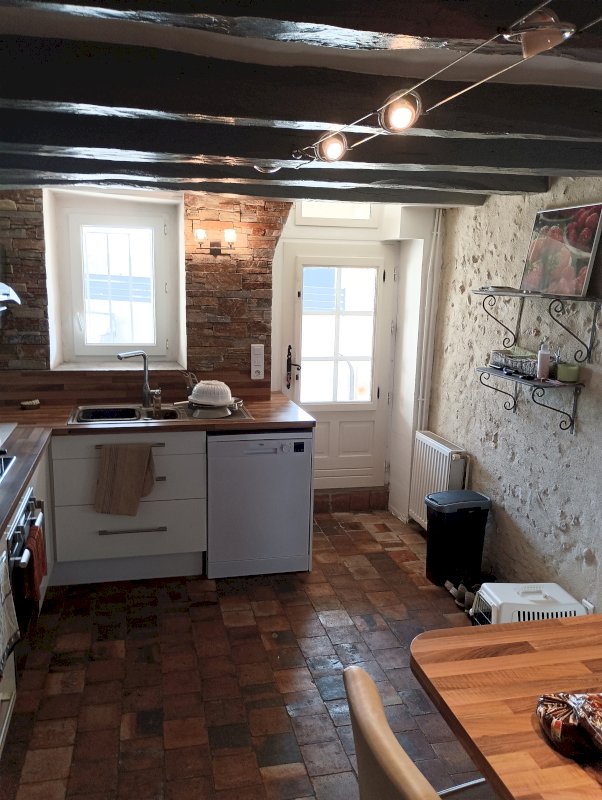 Rénovée avec des matériaux de qualité (dallage en pierre, poutres en chêne, tomettes d’époque), cette propriété offre un cadre de vie chaleureux et authentique, idéal pour une famille ou un projet mixte habitation / location.