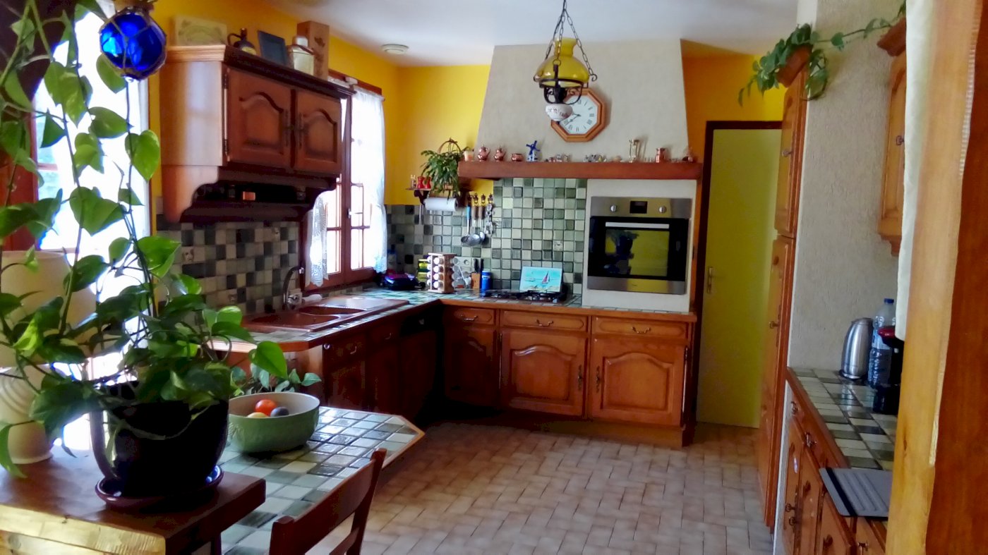 Entrée, cuisine équipée de 13 m², Salon/Salle à manger 30 m² avec cheminée à insert, 1 chambre avec salle d'eau 15 m², 1 wc séparé avec lave-mains 1,76 m², 1 Garage attenant à la maison et isolé de 27 m². Grenier isolé sur dalle béton au-dessus du garage.