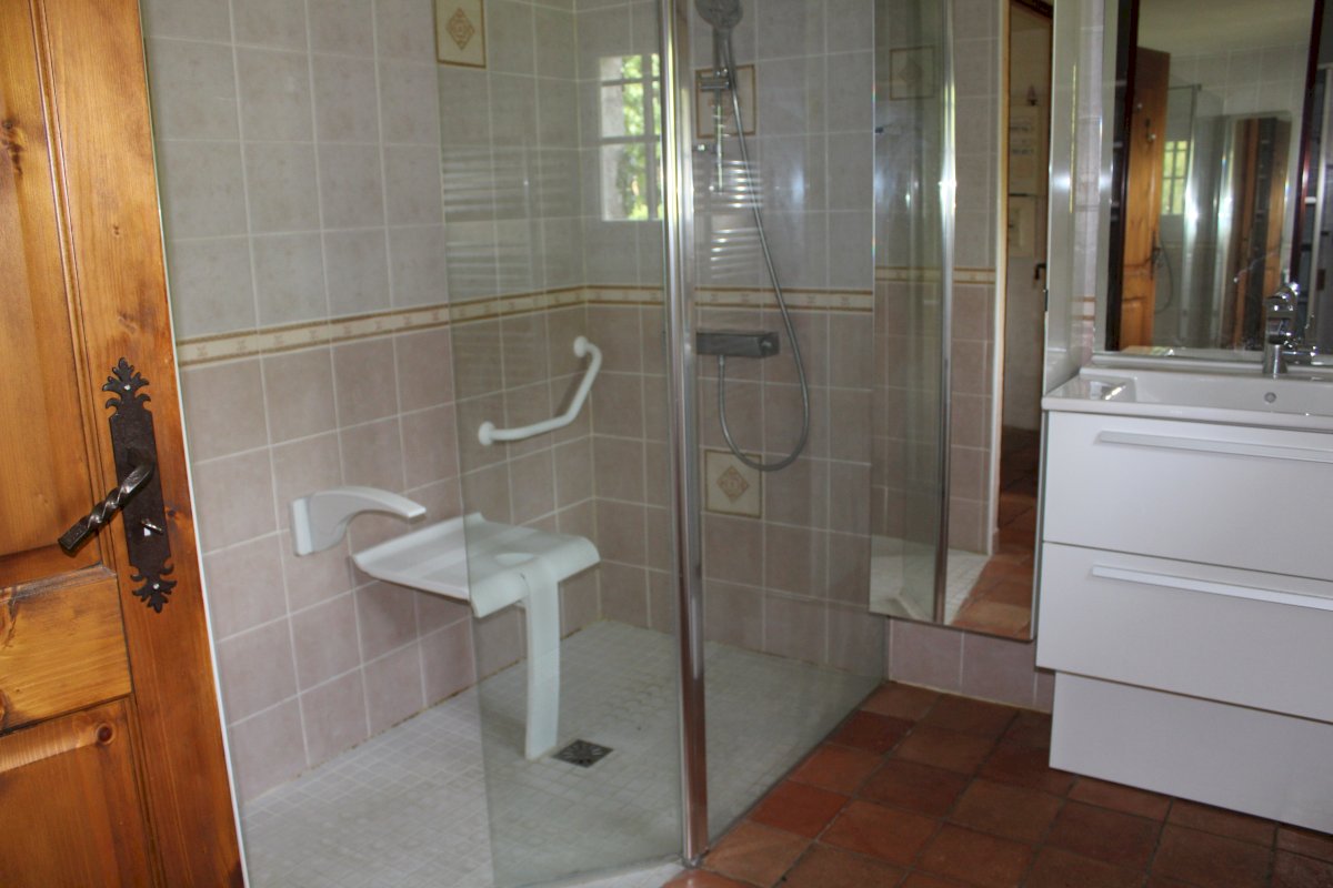 Au rez de chaussée : une entrée, grande pièce de vie avec cheminée, poutres, tomettes au sol, une cuisine aménagée avec four et lave-vaisselle, une grande chambre avec ouverture sur le jardin, une salle d’eau et un WC séparé.