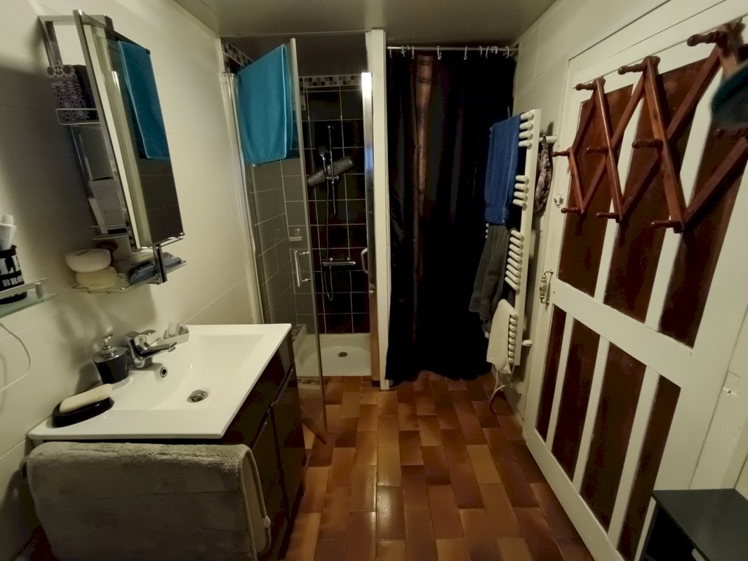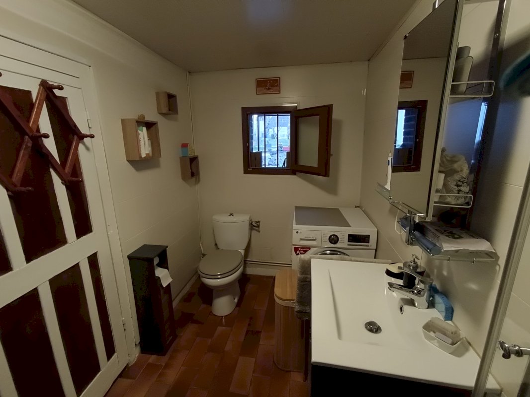 A l’étage : 1 chambre (7,50 M2), 1 chambre (13 M2), 1 pièce de (5,5 M2).