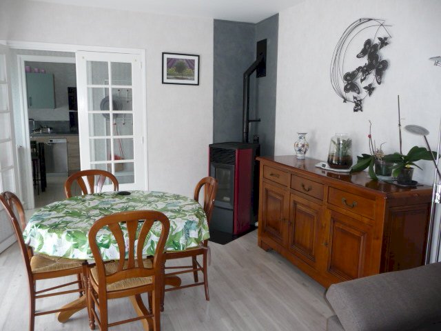 Cette maison traditionnelle dispose d’une isolation des combles, de menuiseries en PVC oscillo-battantes double vitrage avec volets roulants électriques, d’une clim réversible et d’un poêle à granulés.