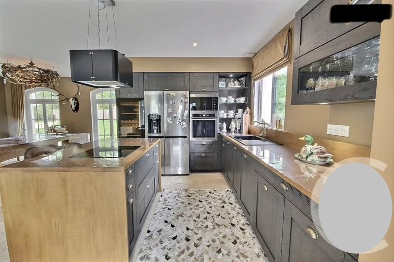 Maison faite par des artisans, compagnons du Devoir. Ce n’est pas une maison de constructeur, tout a été fait sur-mesure avec des matériaux nobles comme du chêne, du travertin et du marbre.