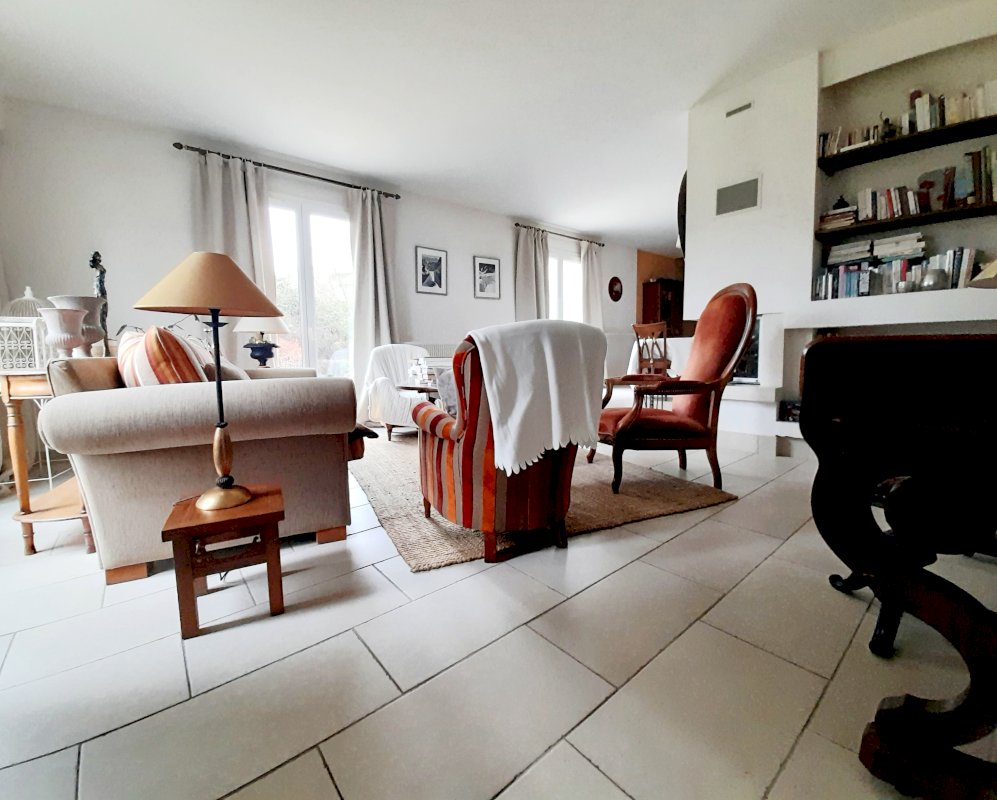 - Grande pièce à vivre lumineuse avec cheminée double-face, ouvrant largement sur le jardin et sa terrasse de 50 m²