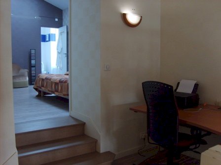 Au rez-de-chaussée : entrée/salle de loisirs - À l'étage : mezzanine, grande chambre lumineuse avec salle de bains (baignoire/douche) et WC, dressing.