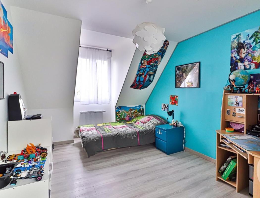 A l'étage, un couloir desservant 4 chambres dont une de 14m² traversante avec deux ouvertures (fenêtre velux) et une salle d'eau avec douche, wc, lavabo, meubles de rangement.