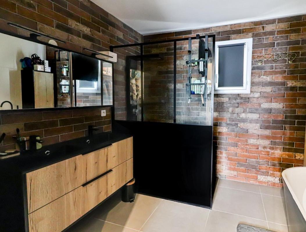 Chambre parentale dressing et salle de bain (double vasque, douche et baignoire îlot). WC indépendant et lave main. Buanderie ou cellier (suivant utilisation), ballon thermodynamique, adoucisseur d'eau, chaudière neuve entretenue. Garage. Grandes baies vitrées. Lumière traversante. Matériaux de qualité.