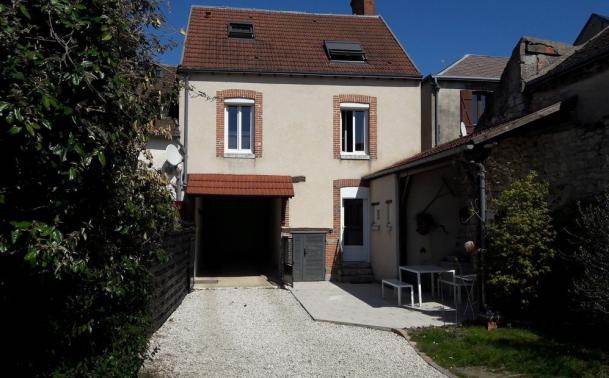 Jardin clos de 300 m² orienté sud avec terrasse, garage, cave, appentis, bûcher, accès sur rue par porche et porte motorisée.