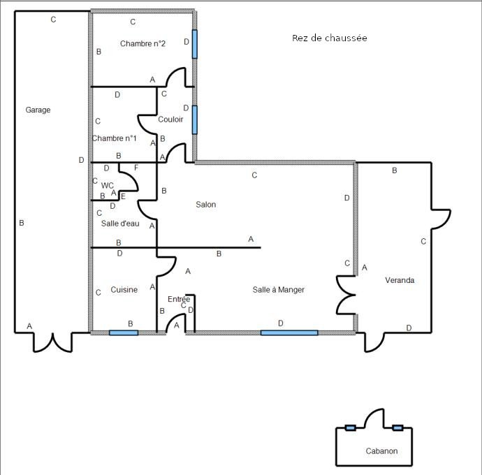 En rdc : entrée, séjour double(35m²) avec insert, cuisine aménagée(10m²), 2 chambres(10 et 15m²), véranda(14m²)