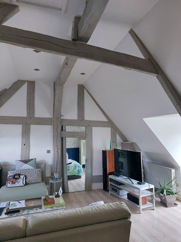 1er : gd salon/poutres 28 m², gde chambre et salle d’eau avec wc.