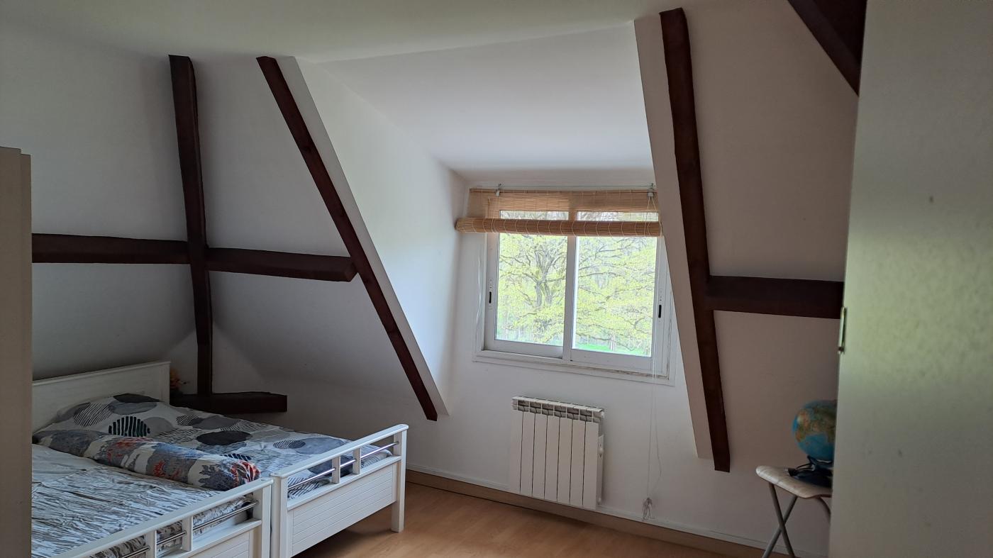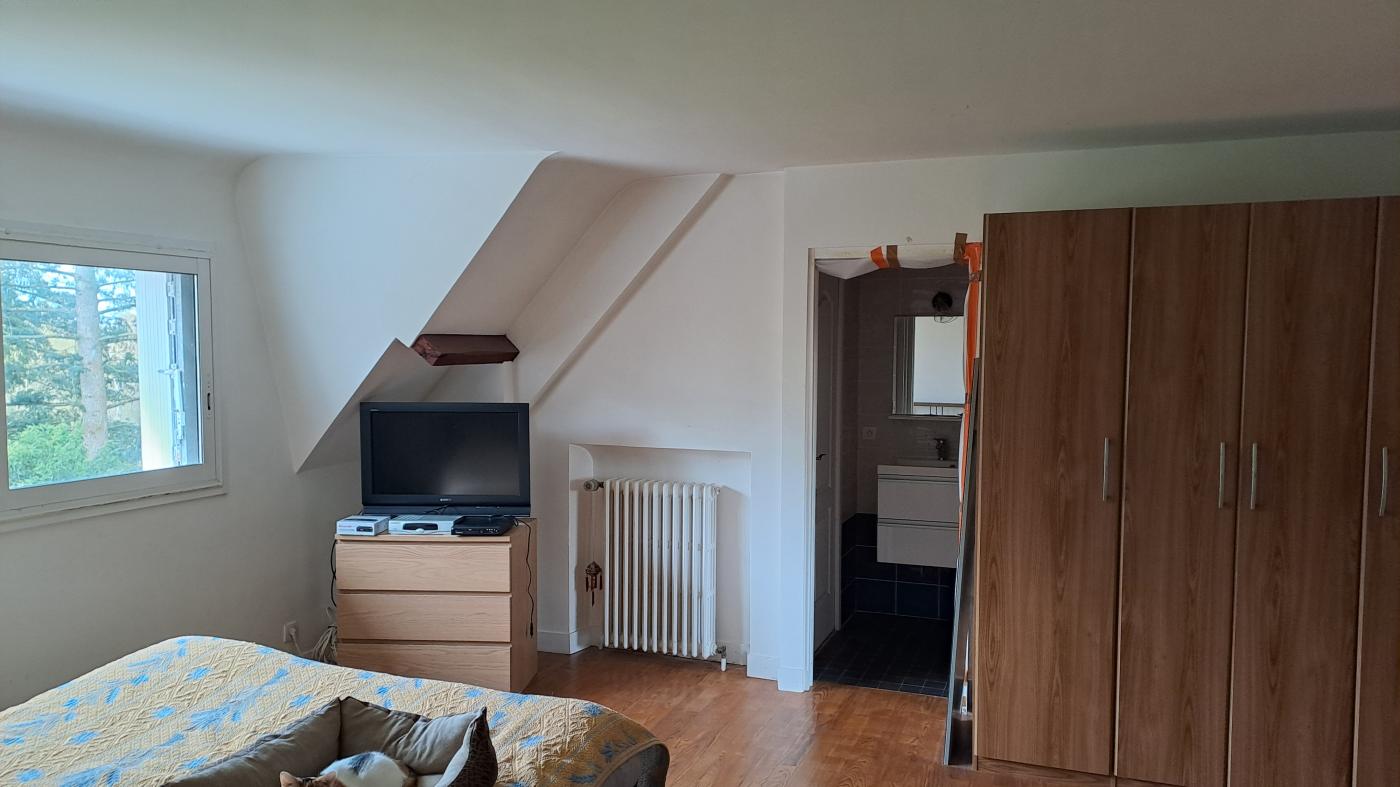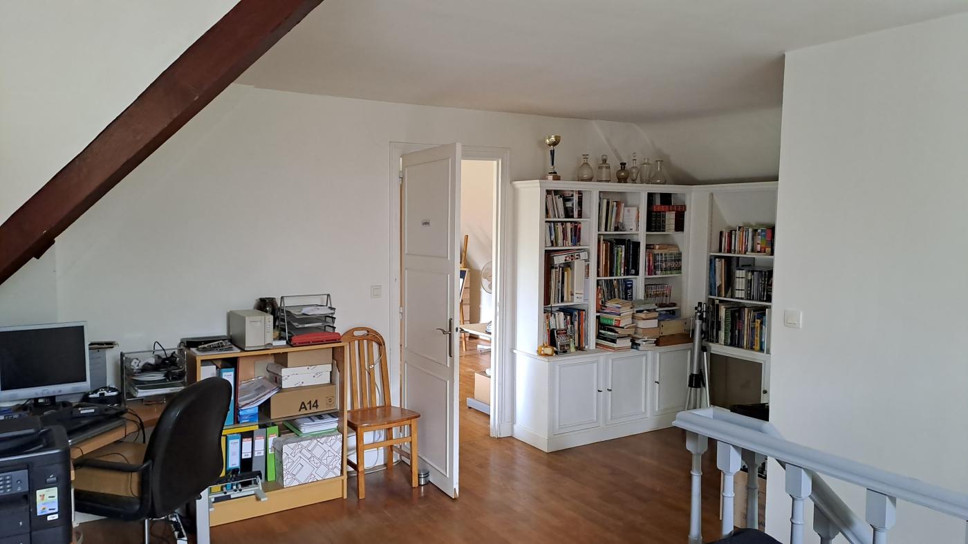 A l’étage : 1 dégagement faisant office de bureau, 2 chambres, 2 débarras, 1 wc avec douche et lavabo.