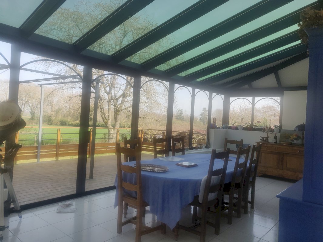 Une grande entrée dessert un beau salon salle à manger, avec cheminée, une belle cuisine ouverte donne sur cet espace et sur une véranda, cela fait un espace spacieux et conviviale pour toute la famille. L'entrée donne aussi sur un salon télé qui peut faire office de chambre ou de bureau. Une grande suite parentale avec salle de bain, à l'est, soleil du matin.
