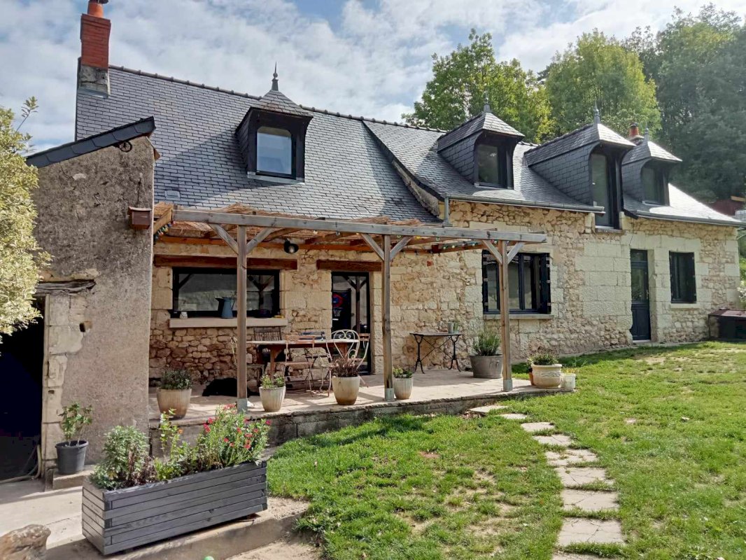 En campagne, dans un hameau calme, belle longère de 128 m² sur un terrain de 1685m² entièrement fermé, située sur la commune de Continvoir à 10 minutes de Bourgueil et 25 minutes de Saumur et Langeais.