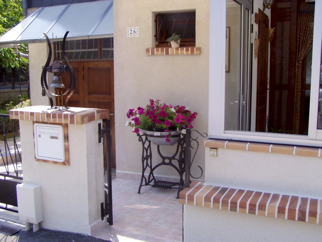 Maison type F5 ( 95 M2 + véranda 15 M2 ) , jumelée, située à l’angle de deux rues avec accès sur chacune d’elles , construite sur une parcelle de 300 M2 .