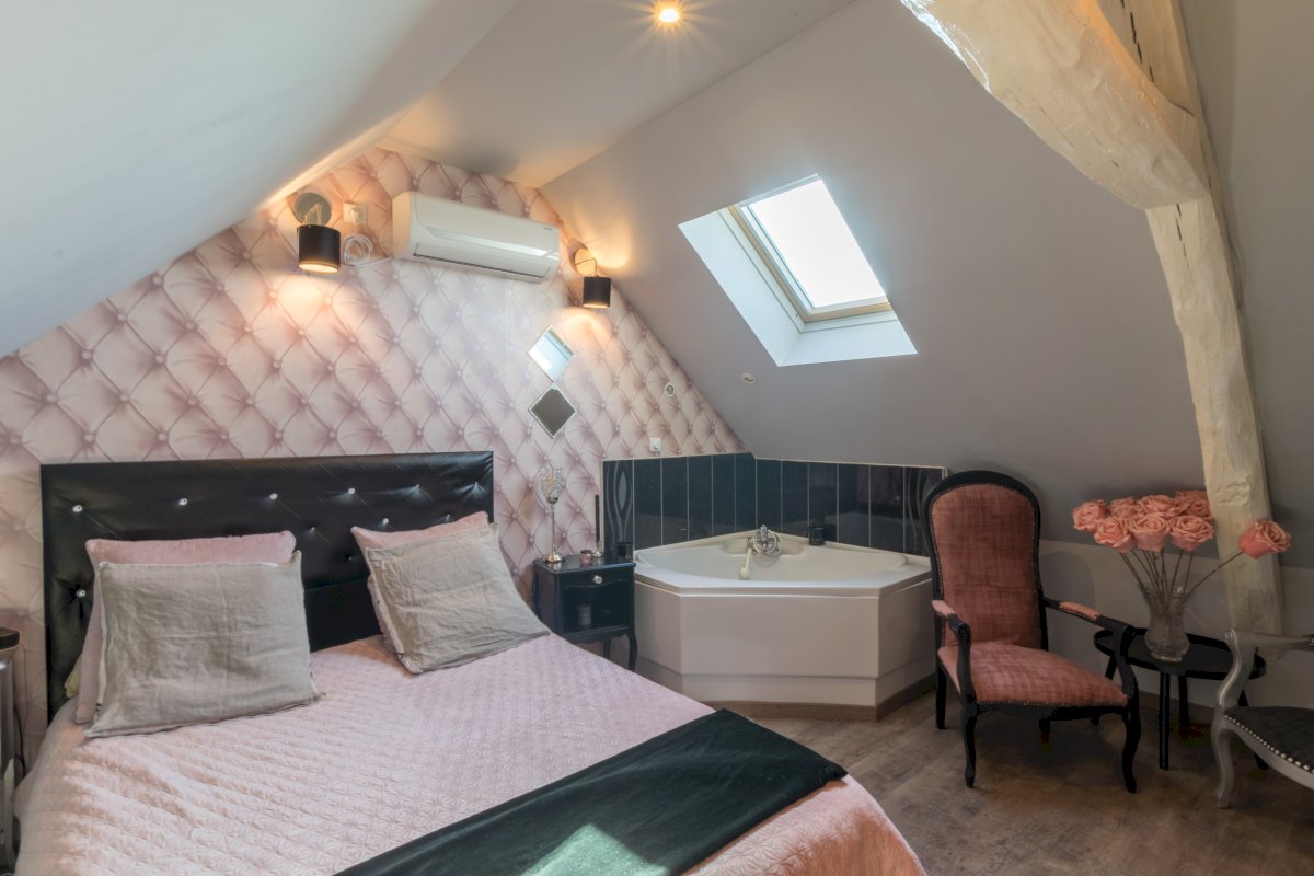 Au deuxième étage : suite parentale avec baignoire dressing et climatisation, 1 petite chambre, wc.