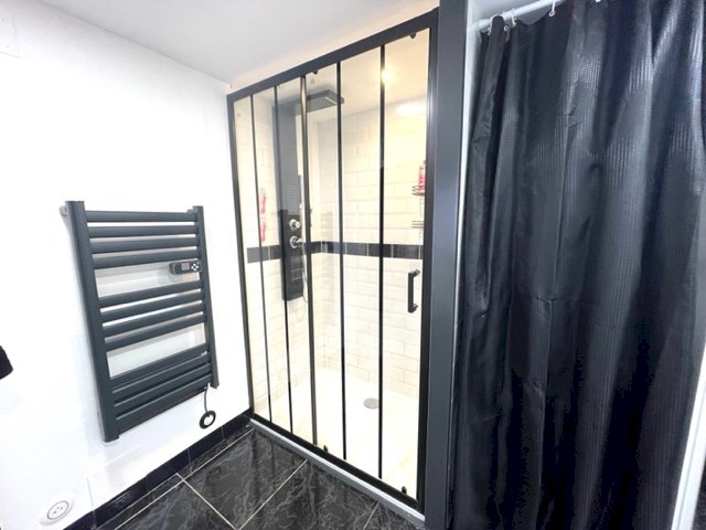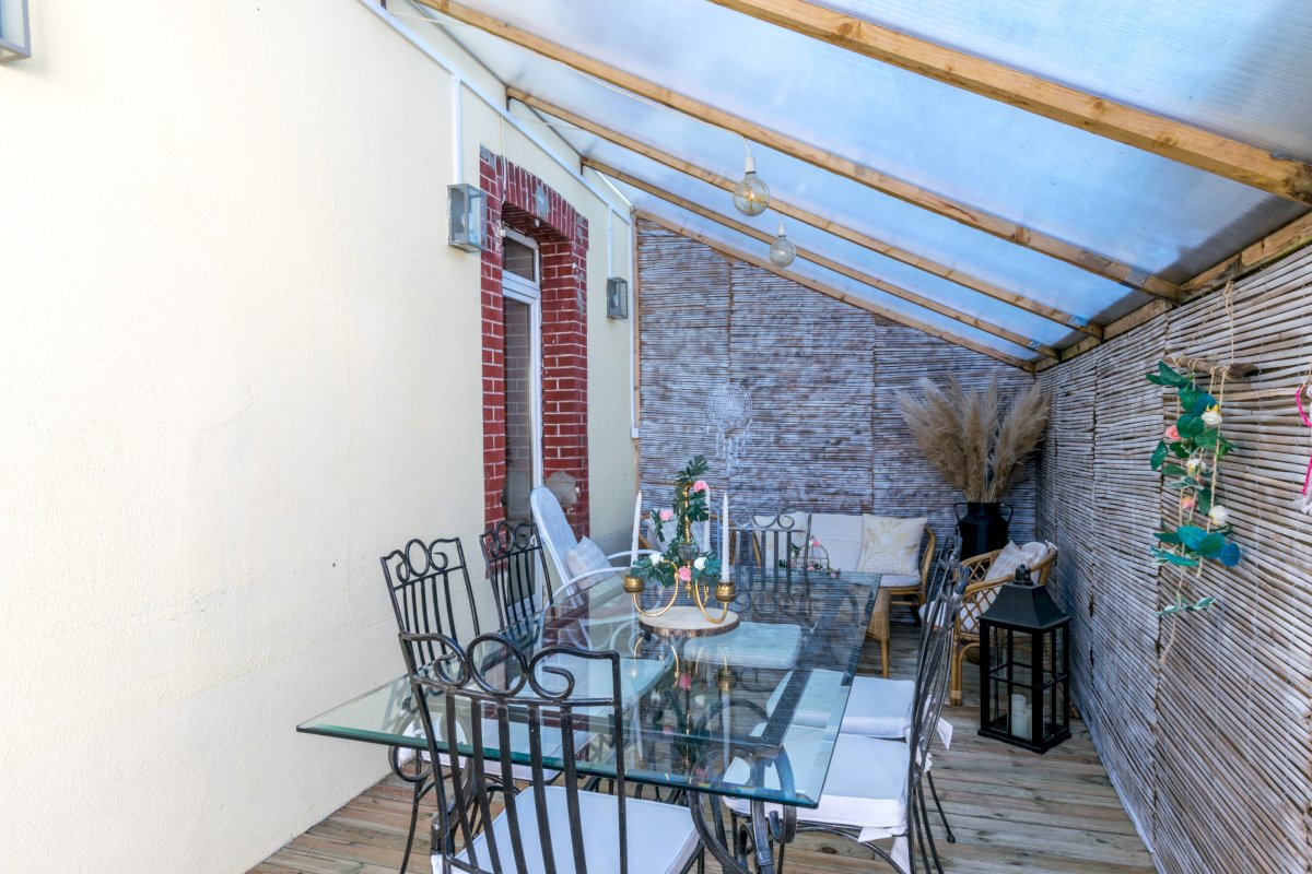 Maison entièrement rénovée d'environ 126 m² habitables sur 3 niveaux, comprenant au rez-de-chaussée : entrée, salon/salle à manger, cuisine équipée, bureau, wc, salle de bain avec douche et baignoire.