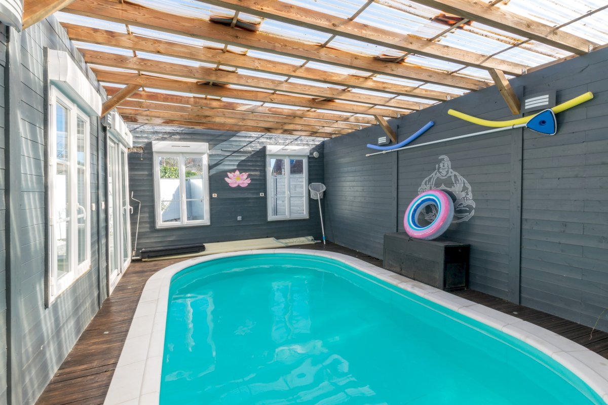 En annexe : piscine enterrée 6X3 chauffée et couverte, jacuzzi, parking et appenti de 6 m².