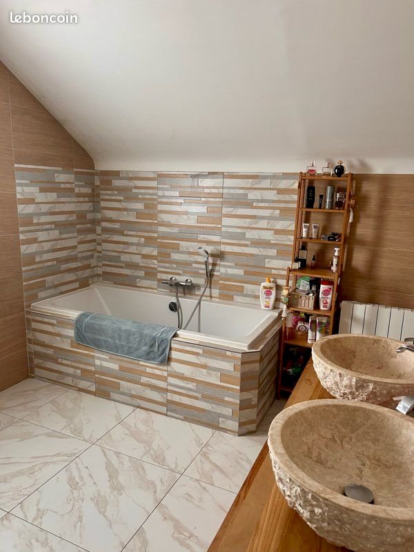 - Une belle salle de bain familiale avec baignoire et douche à l’italienne.