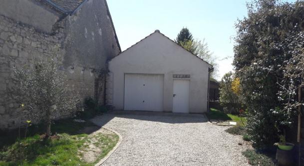 Jardin clos de 300 m² orienté sud avec terrasse, garage, cave, appentis, bûcher, accès sur rue par porche et porte motorisée.
