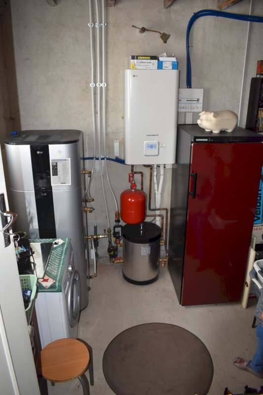 Chauffage avec pompe à air/air de 2022. Chauffe-eau thermodynamique(2022). Garage isolé avec porte électrique et prise green-up pour voitures électriques). Volets de toutes les chambres électriques + solaires pour le haut). Maison très bien isolée. Toutes fenêtres PVC avec double vitrage. Toiture bien entretenue. Pas de travaux à prévoir. Posez vos valises !