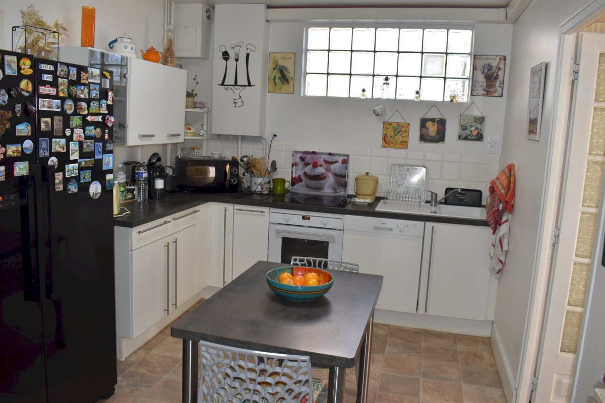 SAINT-AMAND MONTROND (Cher), A VENDRE : Quartier des Grands Villages, sur un terrain de 725 m², à 800 m du centre ville, proche école, collège et lycée, tous commerces, dans une zone pavillonnaire très calme et agréable, charmante maison T5 lumineuse orientée sud, de 1936 pour la partie la plus ancienne et 1980 pour la plus récente, type 4 minimum et de 123 m², entièrement rénovée ces toutes dernières années.( carrelage, papier peint, peintures en 2022, électricité refaite en 2023).