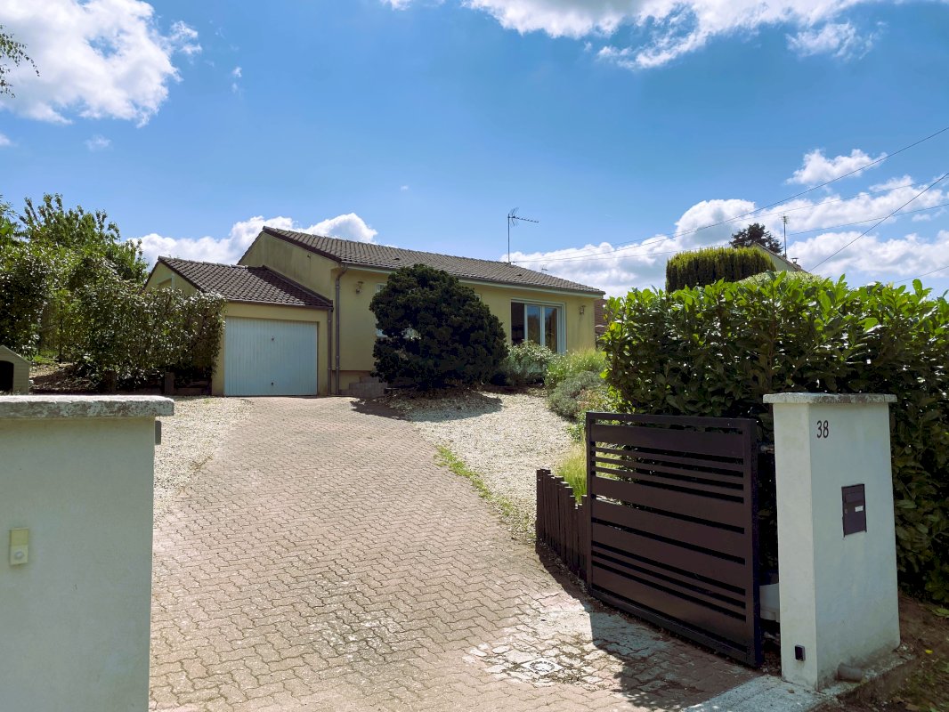 À vendre : maison lumineuse de plain-pied de 85 m², construite dans les années 80, située sur un terrain clôturé de 1 154 m². Idéalement exposée Est, elle offre un cadre de vie paisible grâce à un relief naturel apportant du cachet et une vue dégagée.