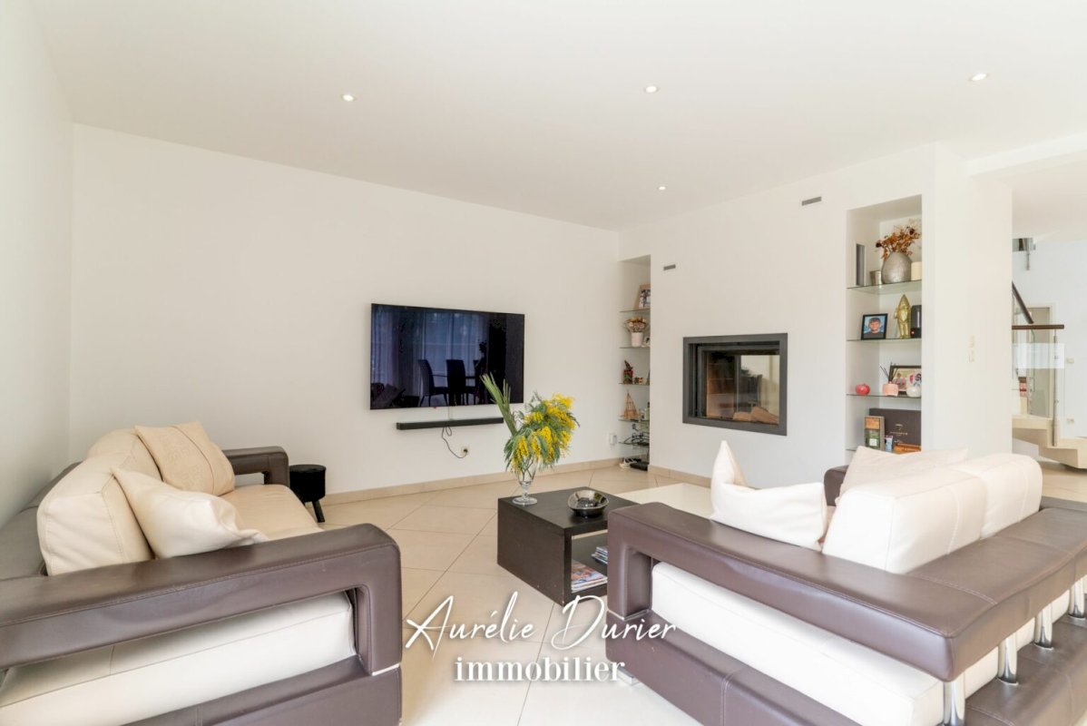 Baigné de lumière, le vaste séjour traversant de plus de 60 m² s’ouvre sur l’extérieur.