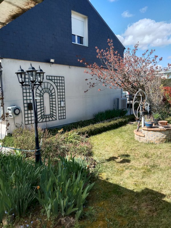 Maison type F5 ( 95 M2 + véranda 15 M2 ) , jumelée, située à l’angle de deux rues avec accès sur chacune d’elles , construite sur une parcelle de 300 M2 .