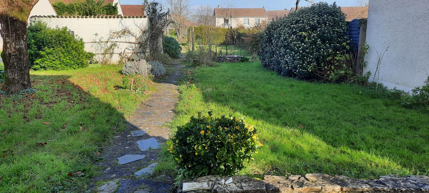 et de plain pied : garage, 2 pièces dont cuisine d'été sur jardin, cabanon en dur, puits, double vitrage, chauffage central gaz, sur terrain environ 600m² entièrement clos.