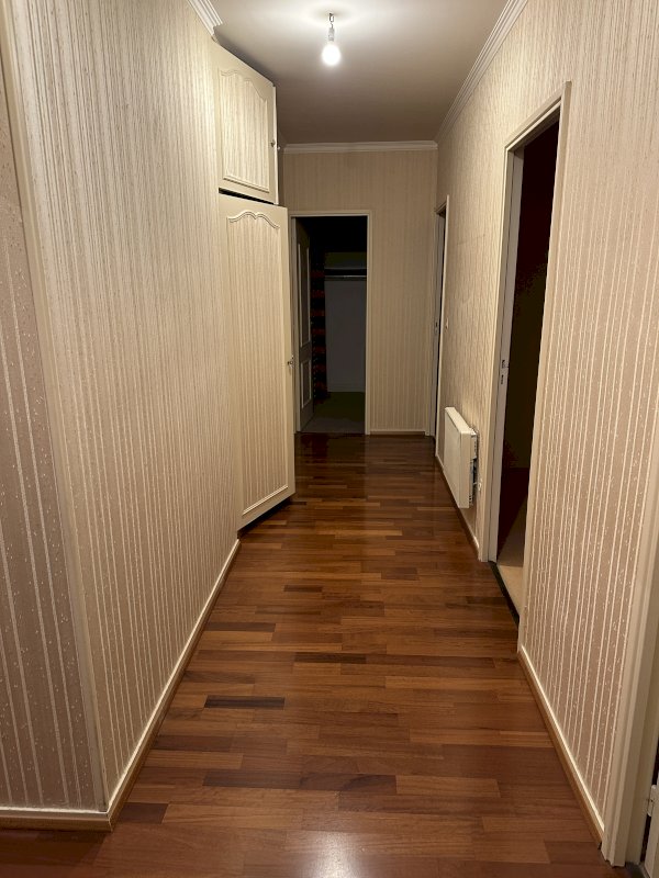 Pour la partie nuit, un couloir avec grand placard dessert trois chambres de 13, 13 et 9 m2 dont une avec petit balcon, un grand débarras, une salle d'eau et un WC séparé.