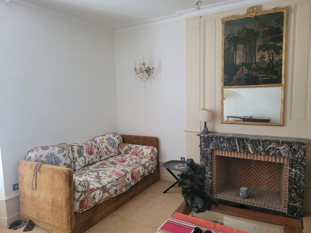 Au sein du Golf de Touraine, dans un très bel environnement, au premier étage du château de la Touche, cet appartement d'une surface de 29 m² comprend une belle pièce de vie avec cheminée et son trumeau, meublée de deux lits formant divans, d'une bibliothèque, d'une table basse et d'une table de jeu.