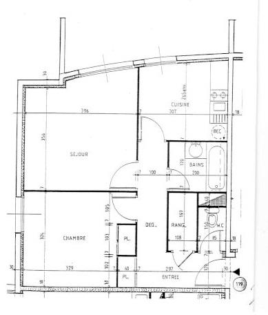 Espace optimisé : Un salon-séjour lumineux, une chambre confortable avec placard, une cuisine séparée, une salle de bains avec baignoire. WC séparés. Placard et grand débarras dans l'entrée.