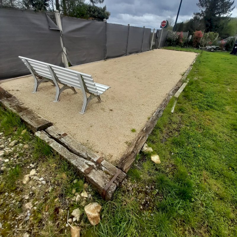 Une terrasse en grave calcaire de 50m². Une dalle de piscine ou pour gloriette /salon de jardin.