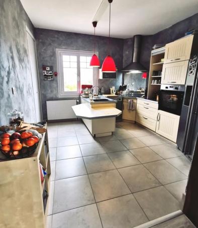 - une cuisine de 13 m² entièrement équipée Schmidt (réfrigérateur américain, plaques de cuisson, hotte, lave-vaisselle et four, électroménager vendus avec la maison),