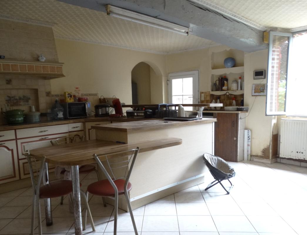 Ancien corps de ferme de plain-pied, 139 m², 7 pièces avec cuisine aménagée et cheminée (31 m²), 3 chambres, salon-séjour (48 m²) avec coin bar, salle d'eau (8 m²) avec douche italienne, WC séparé, Une grande pièce dans la longueur de la maison côté jardin pouvant faire office de salle de jeux, bureau etc.... (43 m²).