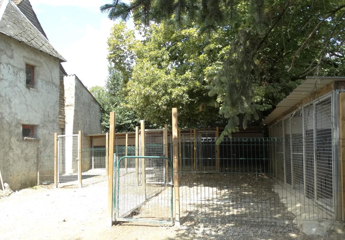 Pour la partie élevage, 9 boxes carrelés et revêtement lavable sur les parois verticales. Courettes devant les boxes. Caniveaux et fosse. Abri métallique, graineterie pour stocker les croquettes.