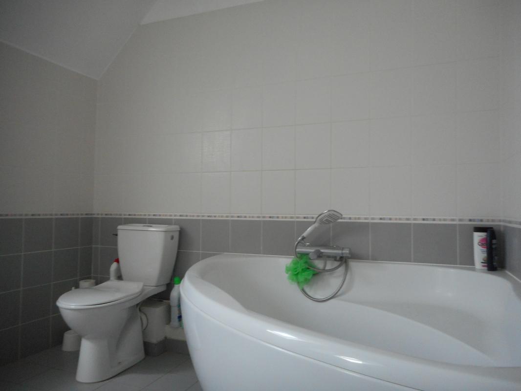 une avec dressing, salle de bains avec meuble, double vaques, fenêtre de toit style Vélux, 2wc. Abri de jardin