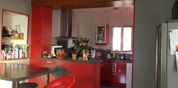 - une grande cuisine équipé ainsi q'un espace de vie de 45 m² avec cheminée,